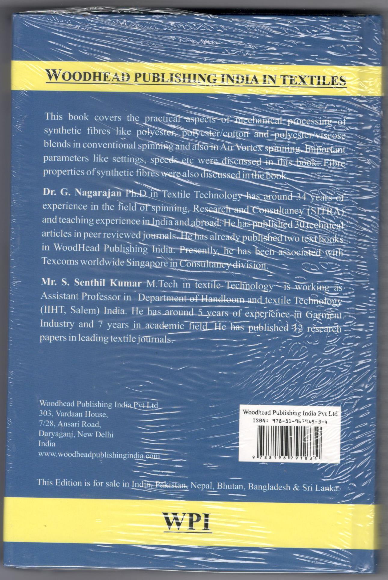 This book covers the Practical aspects of mechanical processing of synthtic fibres like polyester, polyester/cotton and polyester/viscose blends in conventional spinning and also inAirVortex spinning. Important parameters like settings, speeds etc were discussed in the book. Fibre properties of synthetic fibres were also discussed in the book.